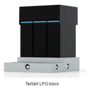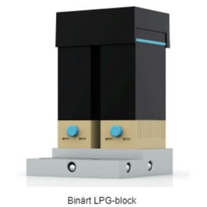 - En LPG-modul är en komponent som dynamiskt mixar mobilfaser på inloppssidan om pumphuvudet genom att snabbt växla mellan de olika lösningsmedelskanalerna. Modulen monteras direkt på pumphuvudet. Det finns två olika LPG-moduler, antingen för binära eller tertiära gradienter.